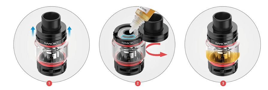 - Revissez l’ensemble sur la cheminée, puis amorcez la nouvelle résistance avant de vapoter.