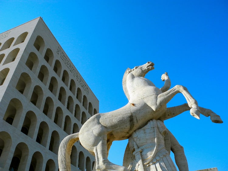À l’extrême sud, descendez à EUR Palasport pour découvrir ce quartier aux édifices années 30-40. Ici trône le Palazzo della Civiltà Italiana, affectueusement appelé Colosseo Quadrato.
